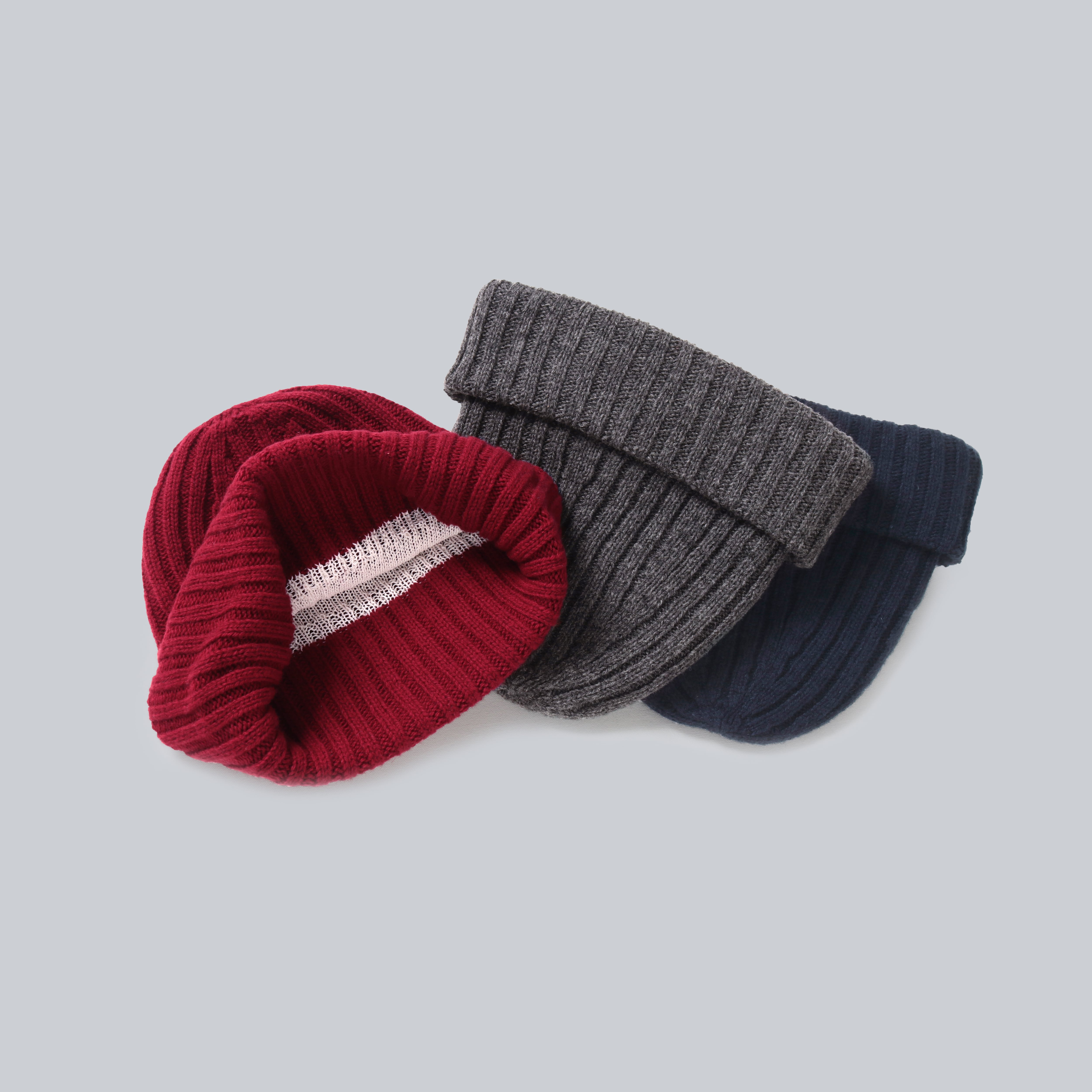 伸縮性に富んだワイドリブのニットキャップ。島精機製作所のホールガーメント機を使用して特殊なダブルフェイス仕様に仕上げました。表側にはウール100%の糸を使用し抜群の保温性を、裏側には和紙素材を使用しその優れた吸湿性により厚手のニット帽にありがちな蒸れを防ぎいつまでも快適に着用して頂けます。※防縮加工を施したウールを使用しておりますのでご家庭での洗濯が可能です。